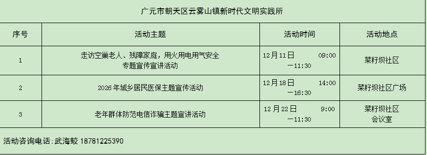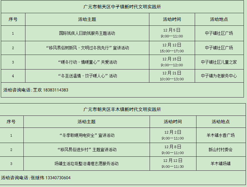 广元市朝天区新时代文明实践中心(所、站)12月重点活动清单
