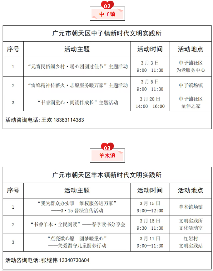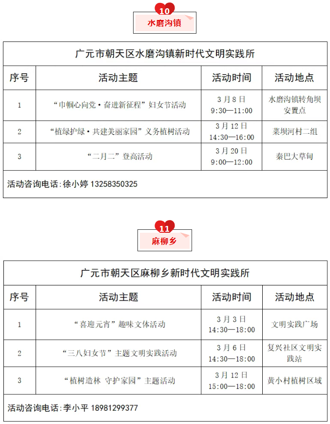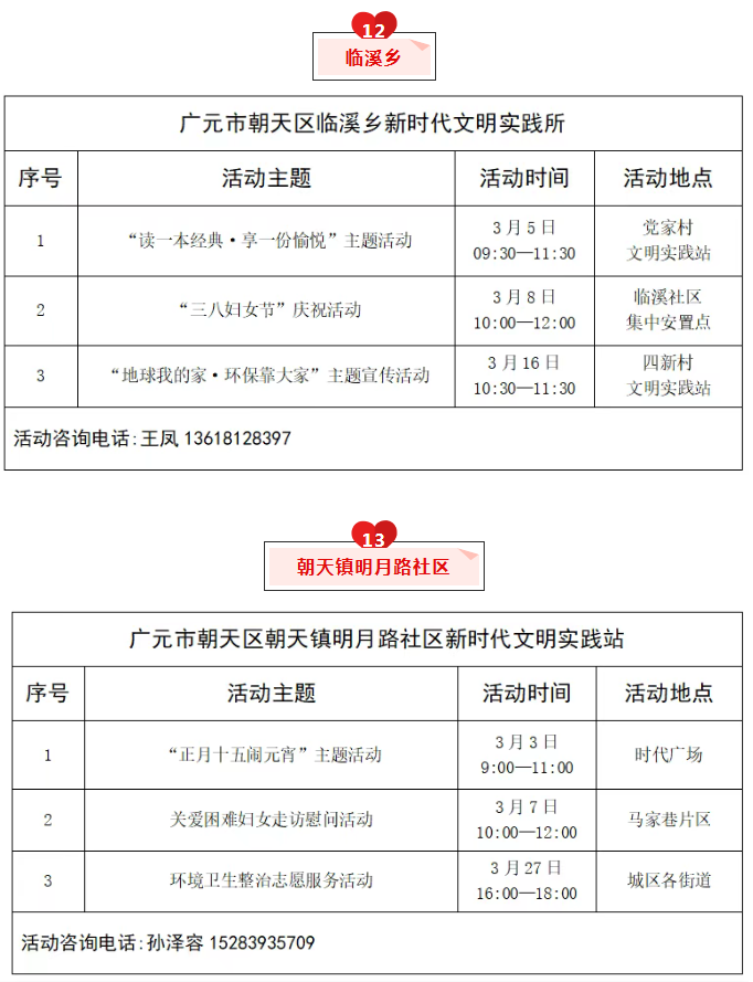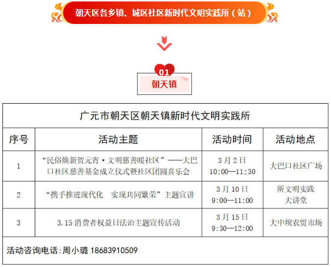 朝天区2026年3月文明实践活动清单公布