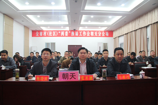 全市电视电话会议结束后,我区庚即召开会议对全区村(社区)“两委”换届工作进行了安排部署。张开翅要求,一要提高认识,准确把握形势,精心安排部署,充分认识开展这次村(社区)“两委”换届选举的复杂性、艰巨性;二要严格把握政策,依法有序实施选举,严格“五好干部”和“两好双强”的选人标准,选举能干事、会干事的人选进村(社区)“两委”班子;三要坚持把村(社区)“两委”换届工作作为当前和今后几个月重点工作来抓,强化宣传发动,相关部门要提前介入,全力搞好指导服务,确保村(社区)“两委”换届选举工作高起点开局、高质量运行、高水平完成,选出群众满意的新一届村(社区)“两委”班子,为建成全面小康和建设美丽朝天做出积极贡献。