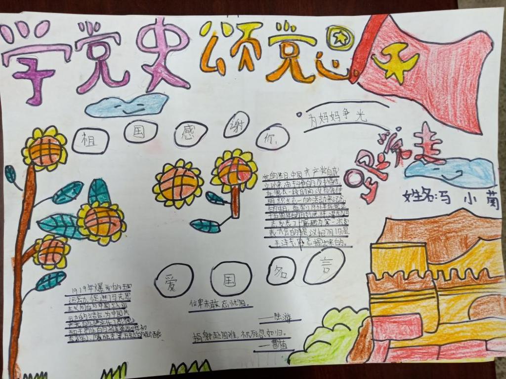 近期,临溪乡小学举办了“学党史、颂党恩、爱党爱国爱人民红色记忆”手抄报活动和演讲比赛。高段学生利用大量史实、详实的资料回顾了党带领全国各族人民进行抗日战争、新民主主义革命、社会主义革命、实行改革开放、探索中国特色社会主义建设道路,为实现中华民族伟大复兴而艰苦奋斗的光辉历程,“红色记忆”弥漫了整个校园。