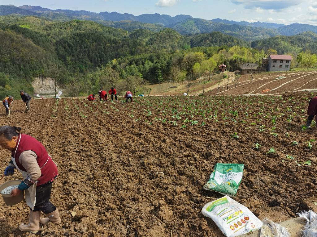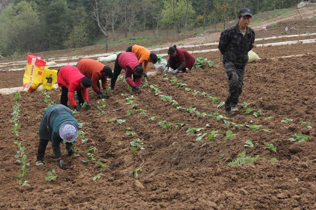 “今年,在镇党委政府的号召和支持下,我一共承包了有500多亩土地,计划全部用于栽植甘蓝、辣椒、茄子等高山露地蔬菜,目前已完成了流转土地的翻耕和种苗的培育,并下种早熟甘蓝品种2个,栽植130亩,预计在6月底上市,大部分晚熟蔬菜预计在10月份大量销售,按照甘蓝保底0.4元/斤的价格,一年下来,保守估计有近30万元的收入”。两河口镇惠农蔬菜专业合作社负责人蔡万平,一边说一边指导地里的工人栽植甘蓝秧苗。
