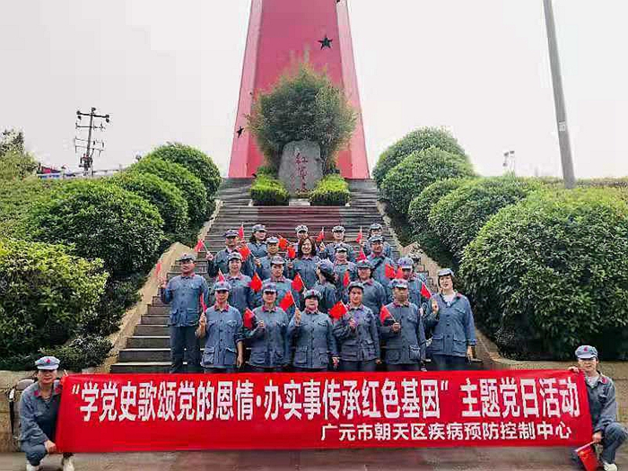 5月28日,广元市朝天区疾控中心组织全体干部职工,在广元红星公园党性教育基地、红军九华岩战斗遗址开展了以“学党史歌颂党的恩情.办实事传承红色基因”为主题的党日活动。通过聆听红军故事、合唱爱国主义歌曲、重温入党誓词、参加《重走红军路》等方式,让大家过了一个充满爱国主义教育的主题党日。