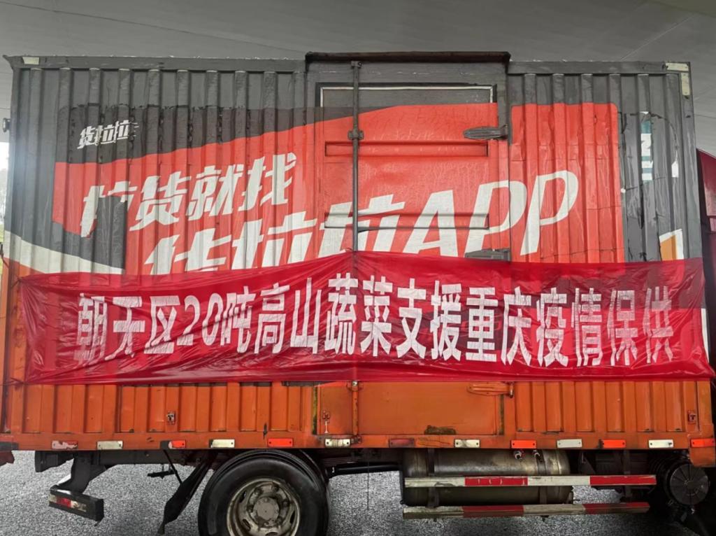 11月30日,满载着朝天区曾家山高山露地蔬菜的2辆货车顺利抵达重庆市渝北区双龙湖街道,重庆市渝北区朝天商会以实际行动支援重庆市疫情保供。