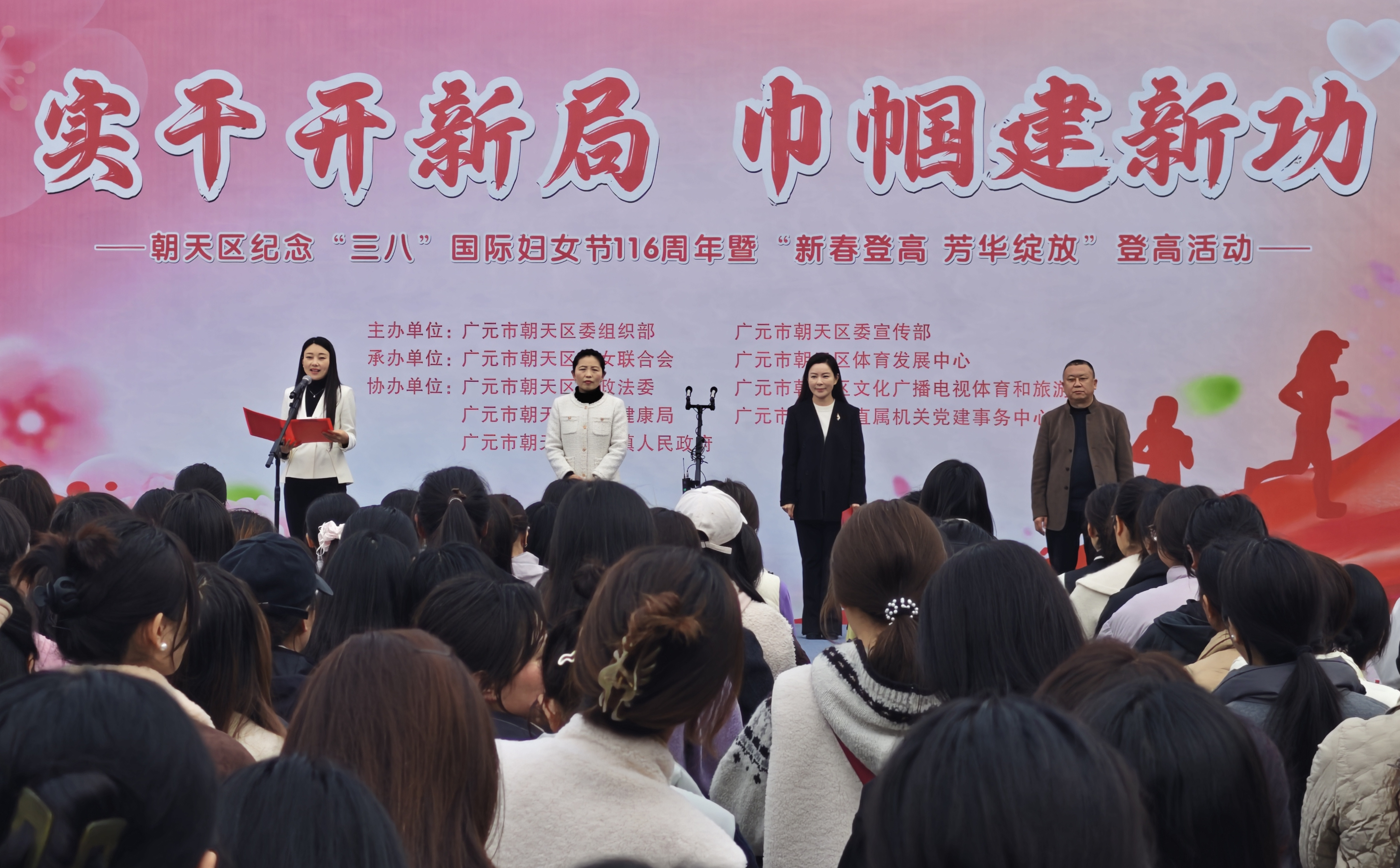3月3日上午,朝天区纪念“三八”国际妇女节116周年暨“新春登高 芳华绽放”登高活动启动仪式在时代广场举行。