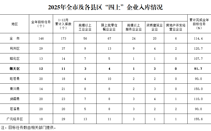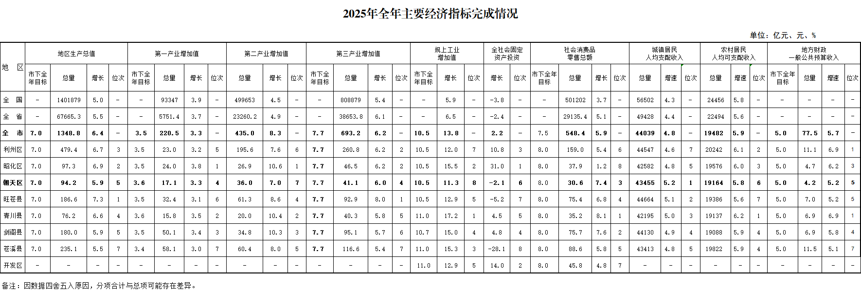注:1.本公报为初步统计数,最终定案数据以《朝天区统计年鉴—2026》为准。