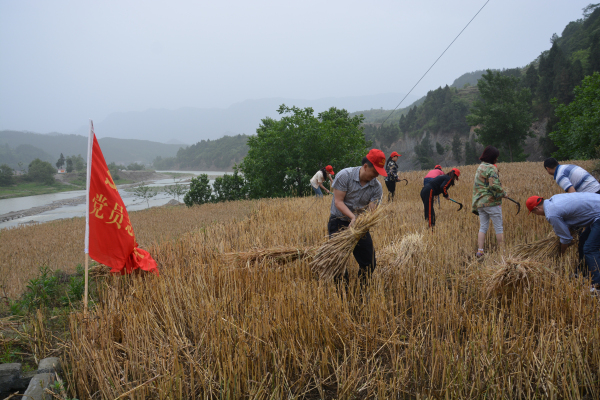 5月25日,朝天区政务中心全体党员干部13人一大早来到了羊木镇银铃村7组村民胡登科家的包产地开展助农“双抢”活动。