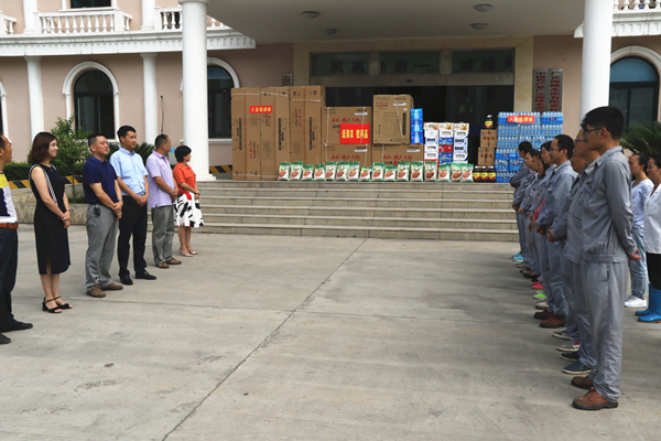 慰问组一行先后深入四川天信石业股份有限公司和广元海螺水泥有限责任公司,向奋战在高温一线的100余名职工表示亲切慰问,并送去了空调、工业电扇、矿泉水、王老吉、藿香正气水等价值5万余元的防暑降温物品。