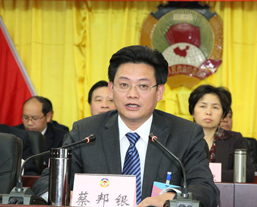 在热烈的掌声中,蔡邦银发表了重要讲话。