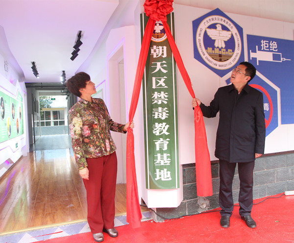 会前,禁毒委在朝天二小举行了朝天区禁毒教育基地揭牌仪式,并参观了禁毒教育基地。