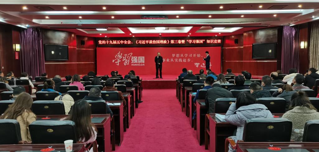 12月10日,由朝天区委宣传部和朝天区总工会联合主办的十九届五中全会、《习近平谈治国理政》第三卷暨“学习强国”知识竞赛活动在该区文化中心举行,来自全区各乡镇部门的122名党员干部参加此次竞赛。