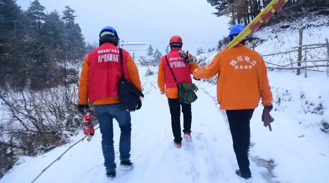 截止17日17时,降雪仍在持续,电力工人们依旧行走在守护万家灯火的路上。