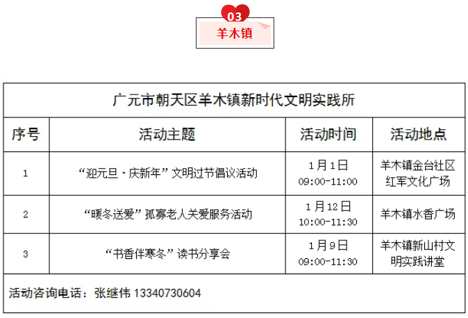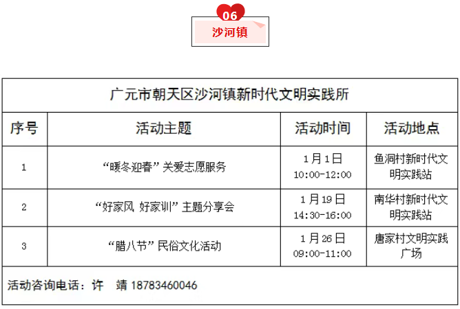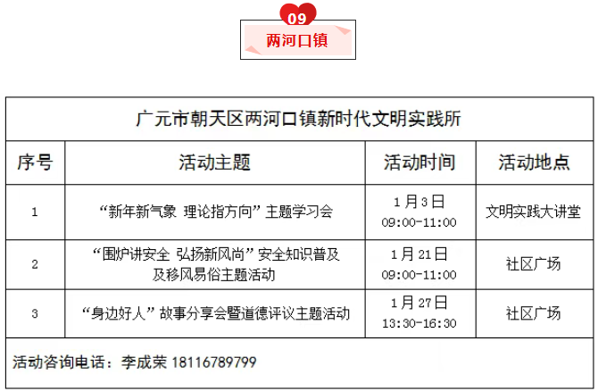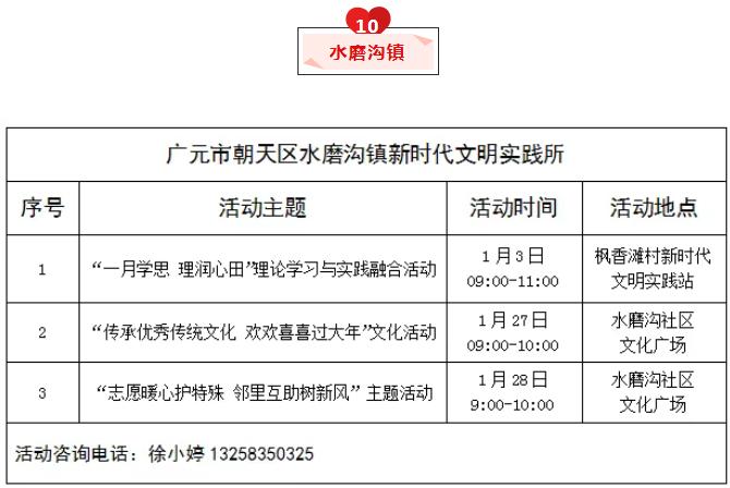 为推动新时代文明实践活动提质增效,充分发挥新时代文明实践中心(所、站)作用,现将朝天区新时代文明实践中心(所、站)2026年1月份部分活动计划清单公布如下,欢迎广大群众积极参与。