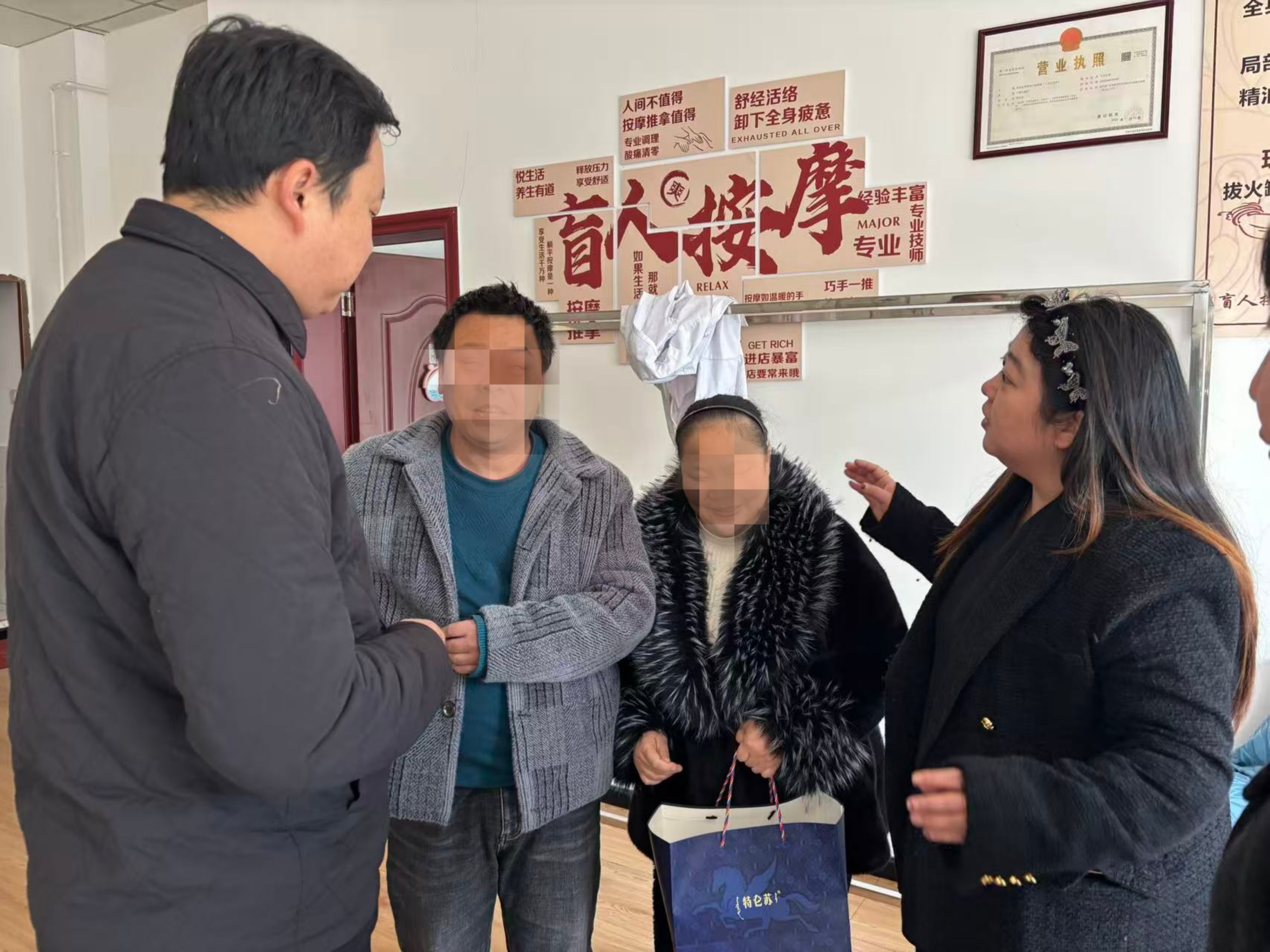 新春佳节是群众办事、政策需求的集中时段,更是践行“我为群众办实事”的关键节点。为精准落实就业创业扶持政策,打破特殊群体政策获取、业务办理壁垒,变“人找政策”为“政策找人”。朝天区人社局主动下沉服务重心,组织工作人员走进辖区盲人按摩店,开展创业补贴政策上门宣讲、申报材料现场指导、业务全程帮办代办“一站式”服务,以暖心举措助力特殊群体创业增收,让新春的暖意浸润群众心间。