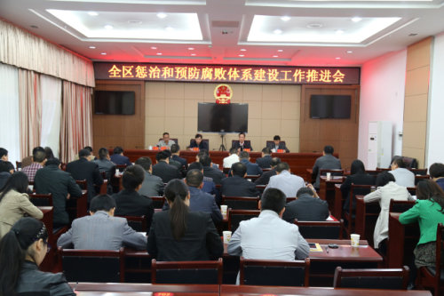 区惩防体系建设工作牵头单位和协办单位分管领导、纪检组长(纪委书记),区纪委监察局机关领导班子成员、各室(办)主任60余人参加了会议。