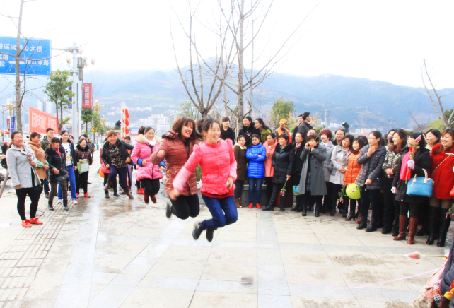 上午10:00,近两千名群众汇聚在朝天大酒店广场,共同欢度“庆三·八,闹元宵”游园活动。活动现场人头攒动,洋溢着欢快的笑声、祥和的气氛,每个游戏前都排起了长龙,现场热闹非凡。