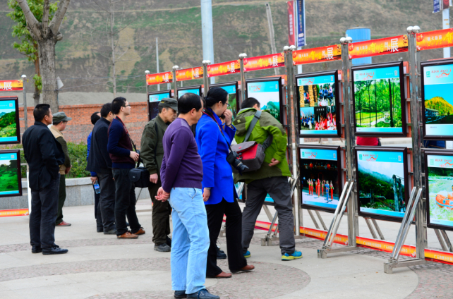 宁强摄影家参观朝天旅游摄影展( 钟卫东 摄)