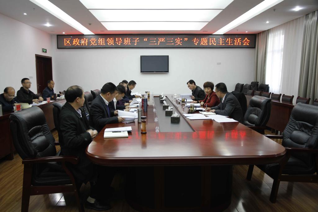 本网讯(黄凤来)1月7日,按照省委、市委统一部署,区人民政府党组班子召开“三严三实”专题民主生活会。市联络指导二组成员周军到会指导,区委副书记、区政府党组书记、区长伏玉琼主持会议,区委常委、区政府党组副书记、常务副区长徐骁,在家的区政府党组成员、副区长李兆南、杨晓波、刘剑波、甘兴礼、李岱参加会议,民盟广元市委委员、民盟朝天支部委员会主委、副区长何开莉,区政府党组成员、区政府办主任苏科年列席会议。