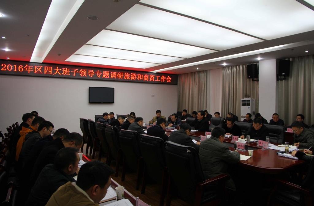 本网讯(杨春恩)1月29日上午,区四大班子领导专题调研我区旅游和商贸工作,区委书记蔡邦银出席调研会并作重要讲话。区政协主席张晓春出席会议。