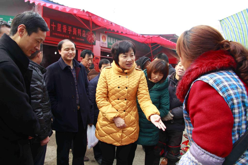 伏玉琼一行首先来到大中坝农贸市场,通过实地查看、听取汇报等形式,详细了解节前粮油、肉蛋等重要生活物资供应及食品安全监管等情况。伏玉琼说,食品安全是关乎人民群众最直接、最现实的问题,各有关部门要高度重视,扎实抓好食品生产、加工、销售等环节的安全监管,维护好市场秩序,确保春节期间物价稳定,为广大市民营造一个安全、放心的节日食品消费环境。