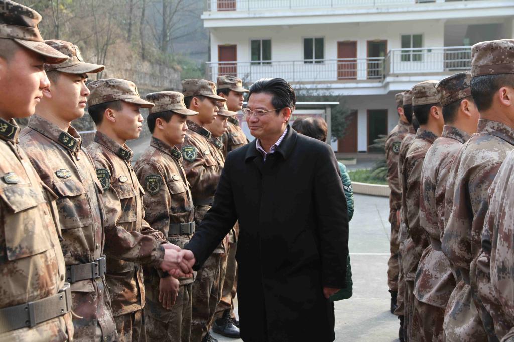 在区人武部、某部队驻地慰问时,蔡邦银为全体驻朝官兵送去棉被、猪肉、大米、食用油等慰问品及慰问金,并与他们一一握手。蔡邦银指出,区人武部在出色完成征兵、预备役部队训练、全民国防教育等多项工作的同时,充分发挥军地之间的桥梁纽带作用,积极服务朝天经济和社会发展;广大部队官兵始终坚持“党管武装、服务人民”的原则,围绕中心、服务大局,在军事训练、应急处突、应急抢险和防汛减灾等各类重要任务中,主动承担急难险重任务,为建设平安朝天,推进全区经济社会发展作出了积极贡献。他希望,2016年,区人武部要进一步加强军政军民团结,服务中心工作,为朝天经济社会发展再立新功,为构建平安和谐朝天作出新的更大贡献;驻朝部队要严格按照习近平总书记“听党指挥、能打胜仗、作风优良”的要求,继续发挥优良传统,全面加强部队建设,不断提高履行使命任务能力,坚决完成党和人民赋予的各项任务。