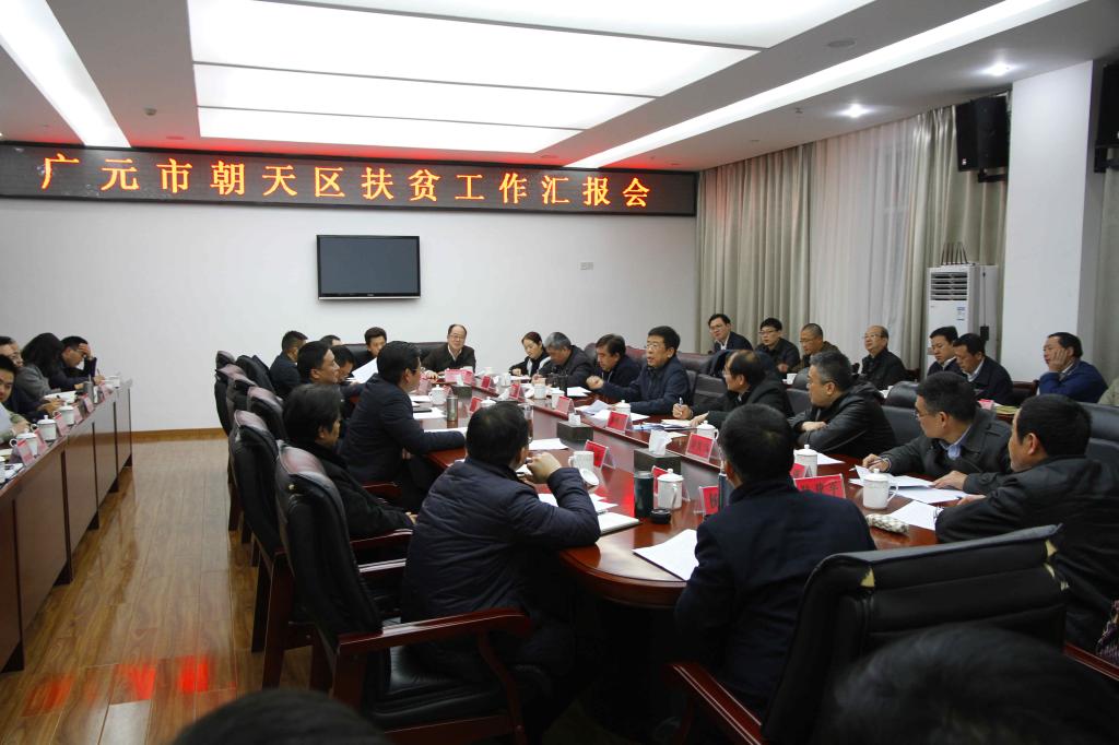 蔡邦银代表区四大班子向国机集团长期以来对朝天区经济社会发展给予的关心关怀表示衷心感谢,并详细介绍了朝天经济社会发展特别是脱贫攻坚工作情况。他说,近年来,区委区政府坚持以脱贫攻坚统揽全域工作,强化统筹协调,创新工作举措,突出工作重点,联动推进新村扶贫、产业扶贫、智力扶贫和社会扶贫,全力打好扶贫开发总体战和攻坚战,自2011年以来,全区年均减少贫困人口5284人,累计改善近3万低收入人口生产生活条件,脱贫成效显著。“受立地条件影响,朝天区在发展过程中虽然存在缺项目、缺人才、缺资金等困难和问题,但我们决战决胜脱贫攻坚有资源、有信心。”蔡邦银表示,下一步,区委区政府将认真贯彻落实中央、省、市部署要求,紧紧围绕“四个全面” 战略布局,坚持发展第一要务,坚决打好“1+4+11”组合拳,确保到2018年脱贫摘帽、2020年实现全面小康。他希望,国机集团继续对朝天区和帮扶村在产业发展、基础设施建设、农民工技术培训、派驻干部等方面给予大力支持,助力朝天经济社会发展。