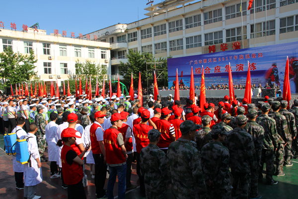 上午8时30分,演练开始。演练以“连日来,我区连续出现强降雨天气过程,累计降雨量达400mm以上,且毫无减弱趋势,多地险情不断”为假想背景,开展综合应急演练。