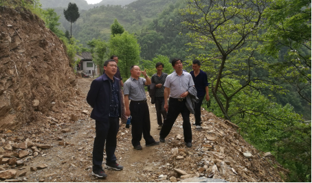 图为区人大办及花石乡干部查看道路建设