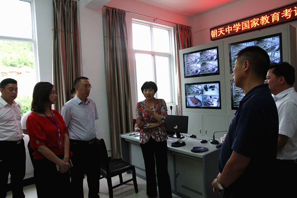 伏玉琼一行先后深入高考考点视频监控室和考点的考务办公室、视频监控室、广播室、食堂和学生宿舍等地,实地查看了考点消防设施、警报器、信号屏蔽器、钟表等考试设备是否正常,详细了解了考试组织安排、后勤保障措施、监考人员培训、考场安全保卫及高考保密等工作,并充分肯定了各部门在今年高考准备工作中所做的努力。