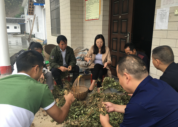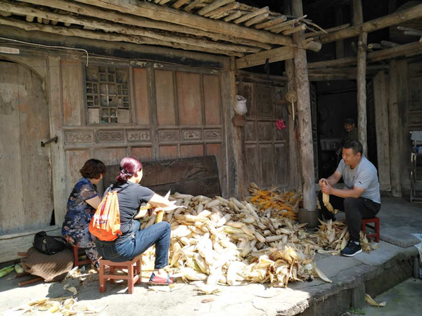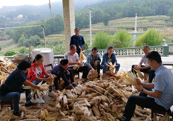 区政府办帮扶干部在麻柳乡天星洞村与贫困户一起撕玉米