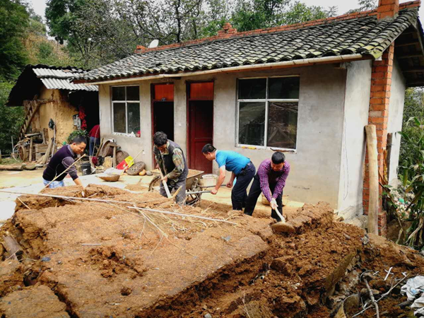 区以工代赈办帮扶干部在文安乡将军村帮助贫困户拆除旧房屋