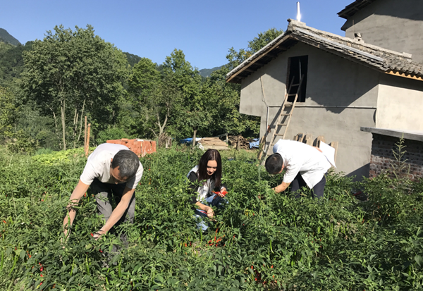 区粮食局帮扶干部在青林乡清凉村与贫困户一起摘辣椒