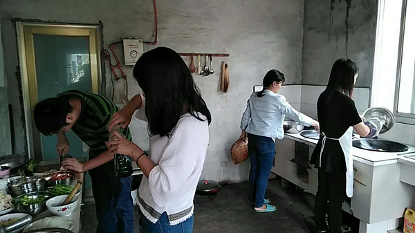 沙河镇帮扶干部在金鳌村与贫困户一起做饭
