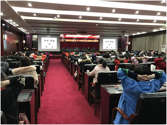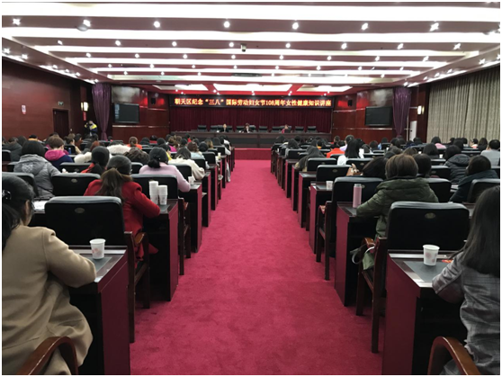 为纪念“三八”国际劳动妇女节108周年,使我区女干部职工更加了解女性生理健康知识,增强自我呵护和自我关爱意识,3月6日上午,朝天区妇联诚邀广元市第一人民医院主治医师王元利老师为大家开展了以“保持身心健康,助力巾帼脱贫”为题的女性健康知识讲座。乡镇妇联主席、副主席,全区机关女干部代表,企事业单位女职工代表,朝天区巾帼创业互助分会会员代表共计160余人参加活动,发放妇女儿童健康知识手册150余册。