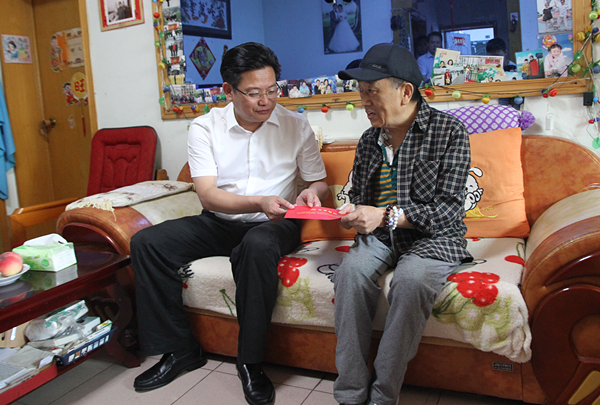 “感谢区委、区政府对我们普通党员的关心、关怀,虽然生活压力有点大,但只要能维持生计,就自力更生,坚强的过下去。”今年62岁的陈天龙是一名伤残军人,妻子患有严重的类风湿病。在其家中,蔡邦银和陈天龙亲切交谈,详细询问他现在的身体和生活情况。蔡邦银要求,要把老党员的冷暖放在心头,时刻关心老党员的生产、生活情况,及时解决生活中遇到的困难和问题。
