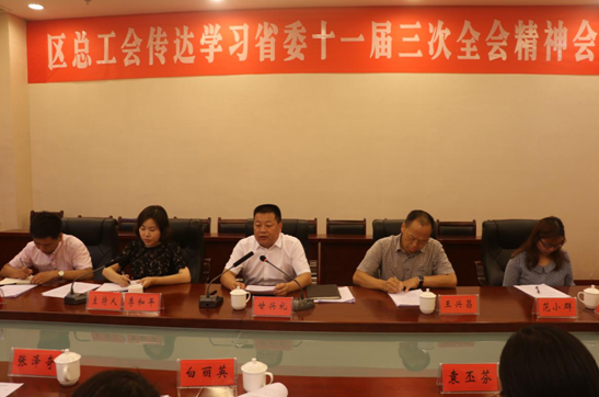 7月4日上午,区总工会组织召开专题会议,传达学习省委十一届三次全会精神。区委常委、统战部部长甘兴礼出席会议并讲话。