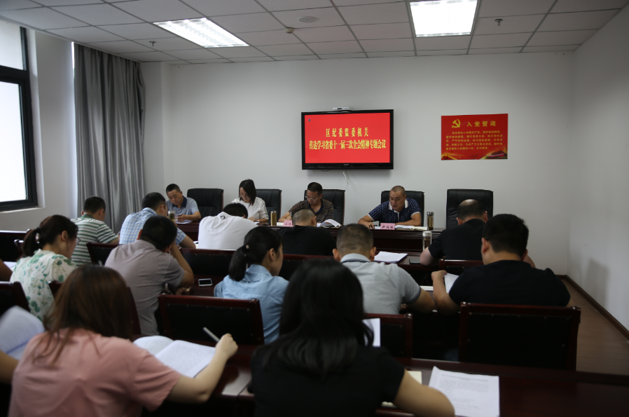 7月4日,区纪委监委召开专题会议传达学习省委十一届三次全会精神,会议重点传达学习了彭清华书记所作的工作报告以及全会形成的两个《决定》,并就市委、区委贯彻落实意见进行了传达。