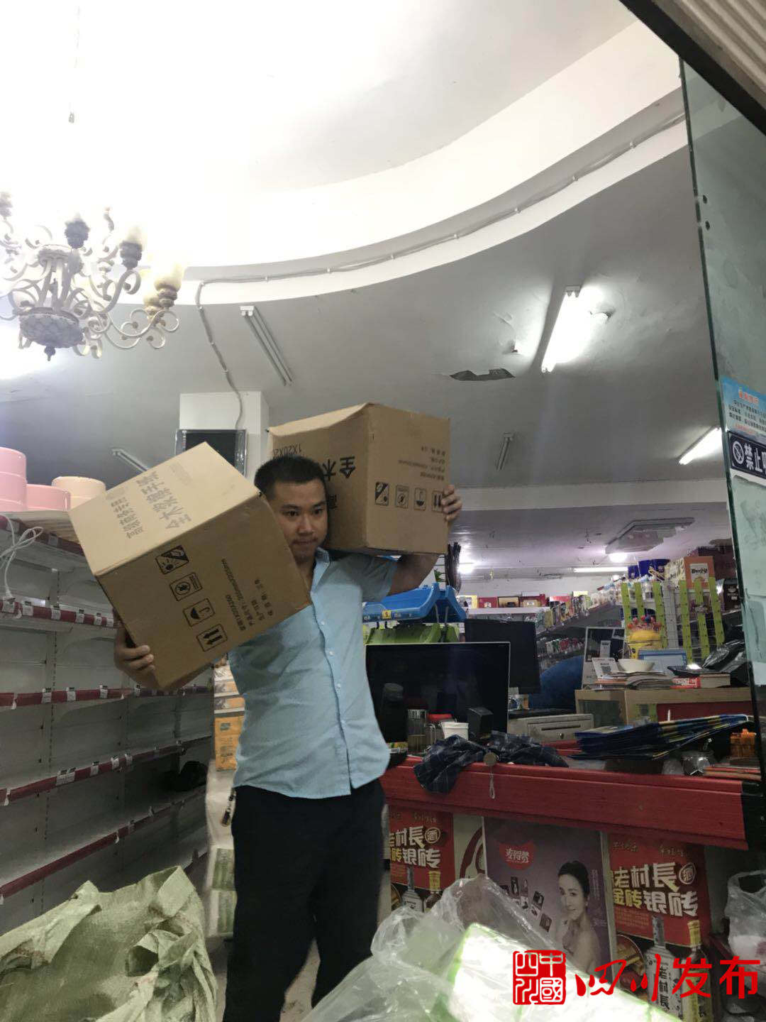 党员志愿服队员帮助受灾群众转移物资