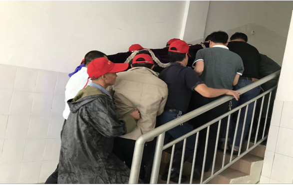 大滩小学组织共产党员突击队紧急抢运学校教学设备。