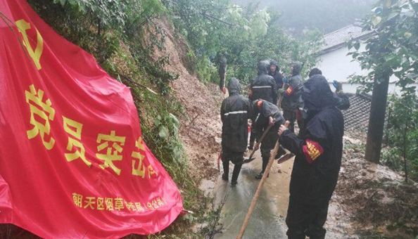 区烟草局成立防汛抢险党员突击队奔赴帮扶的转斗镇校场村,协助村支部开展抢险救援工作。