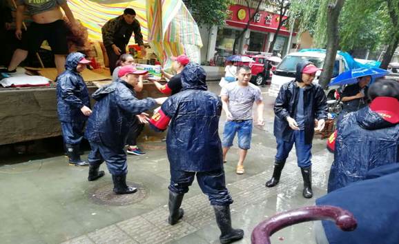 区财政局组织共产党员抢险突击队赴军师街帮助商铺抢运物资。