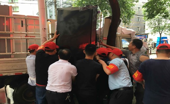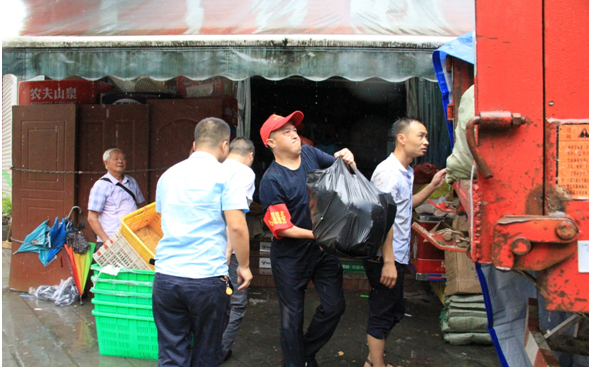 区委组织部共产党员应急抢险突击队奔赴城区五丁街帮助超市转移商品物资。