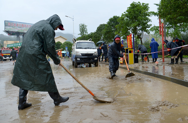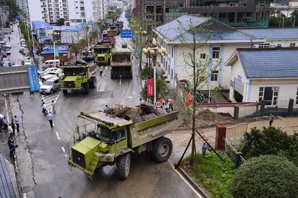 区交通运输局19支工程队抢通公路36条;朝天镇党员干部连夜奋战10多个小时,组织100多户商户安全转移;海事、公安、消防等部门于洪流中拦截、击沉油罐9个,固定漂浮罐车3辆;各地群众积极展开自救……