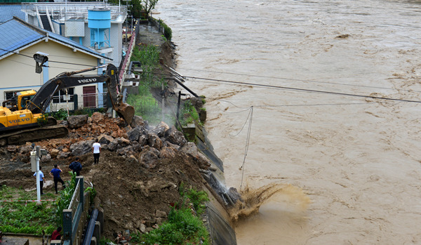 11日下午,朝天城区嘉陵江河堤因为洪水强烈冲刷,出现垮塌。朝天区住建局党员突击队迅速组织出动250余台次大型运输车辆,运送土石方1万余方对河堤进行保护性回填,以减弱洪水对垮塌河堤边缘的冲刷,及时有效遏制了险情。该局负责人介绍,目前,该局5个应急小分队全城24小时巡查,以便及时应对突然出现的险情。