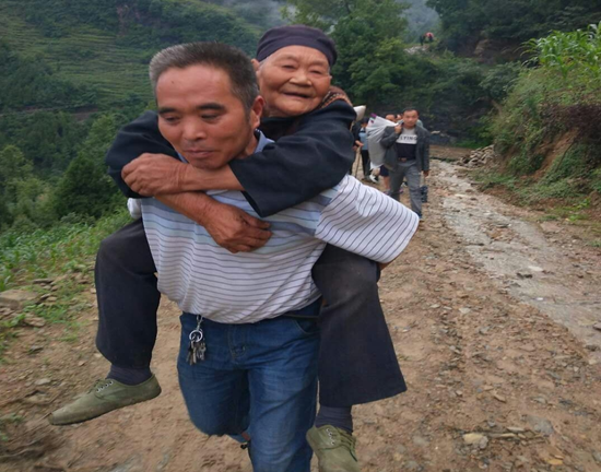 大滩镇自然村组织党员干部紧急转移受灾群众。