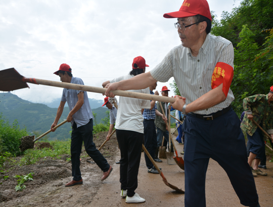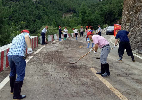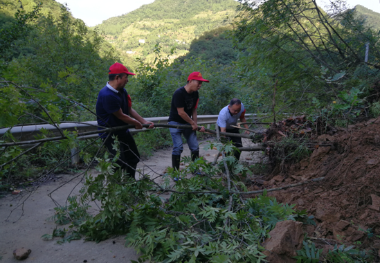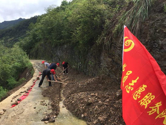区政协办组织共产党员应急抢险突击队到帮扶的陈家乡梯子岩村清理路障。