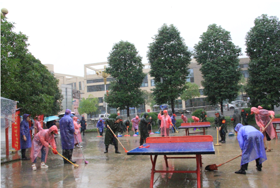 东溪河镇党委组织党员干部和群众在场镇街道集中清淤。