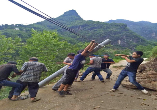 马家坝乡险峰村组织党员干部抢通通讯设施。
