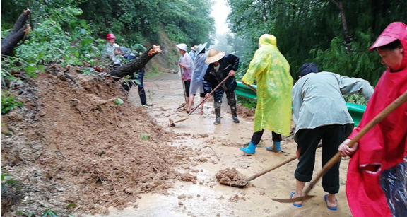 中子镇印坪村驻村工作队和群众紧急清理村路障碍。