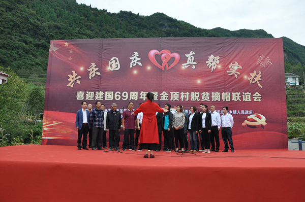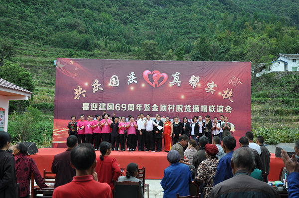 伴着脱贫奔康的坚定步伐,满怀丰收季节的幸福展望,在迎来伟大祖国69岁华诞之际,9月30日下午,一场别开生面的“喜迎建国69周年暨金顶村脱贫摘帽联谊会”在羊木镇金顶村举行。