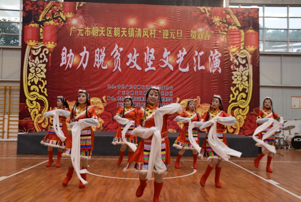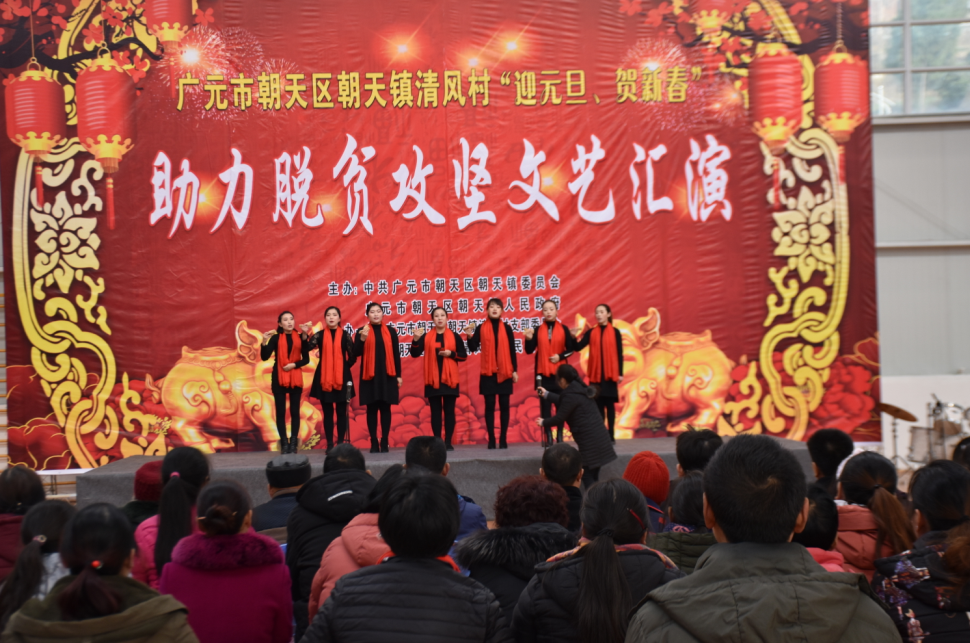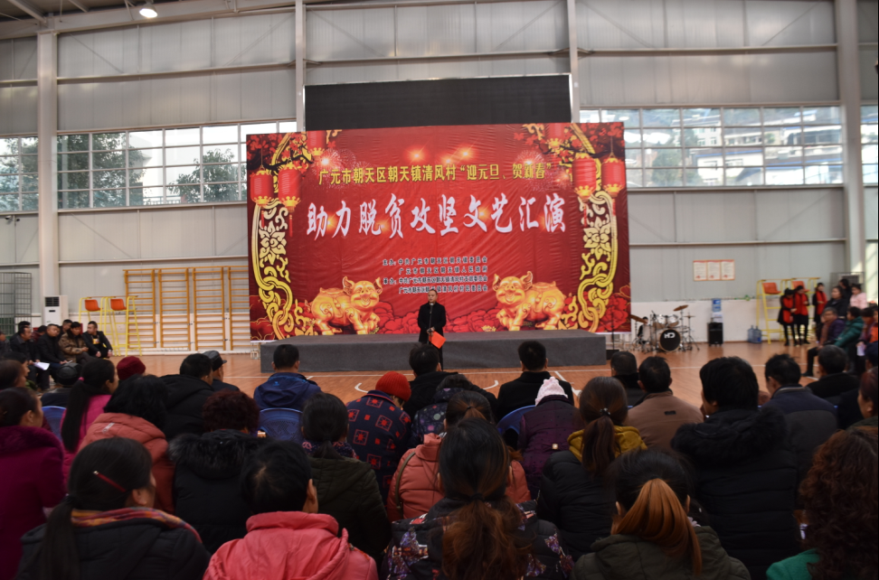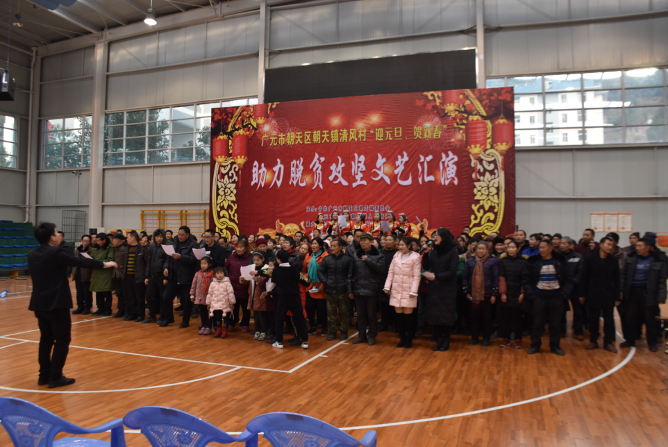 为丰富元旦春节期间人民群众的精神文化生活,营造欢乐祥和的节日气氛,12月29日下午,朝天镇清风村战场举办了以“迎元旦·贺新春”助力脱贫攻坚为主题的文艺汇演,300余名群众现场观看了演出。节目由村民自导自演,并同步开展了政策宣讲、知识竞赛、感恩引导、新春慰问等活动。